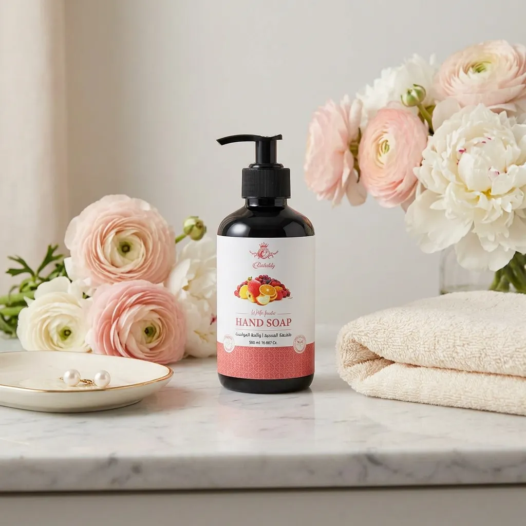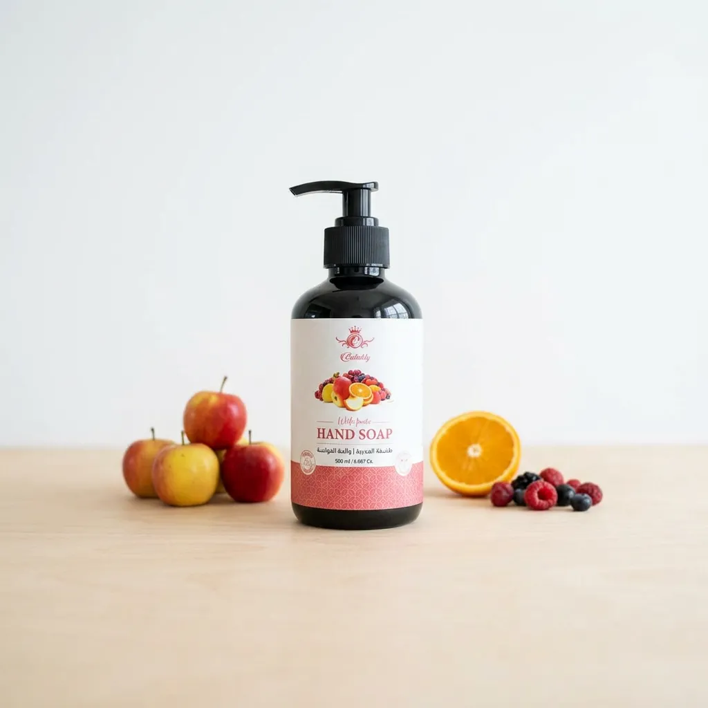 صابون اليدين برائحة الفواكه يمنحك تنظيفًا لطيفًا ولمسة عناية يومية مع إحساس ناعم ومريح للبشرة.